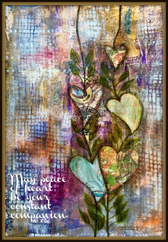 Peace of heart Posted on April 14, 2017 by Louise Gallagher Mixed media on acrylic paper11″ x 14″Louise Gallagher Share this: Click to share on X (Opens in new window) X Click to share on Facebook (Opens in new window) Facebook Click to share on LinkedIn (Opens in new window) LinkedIn Click to share on Pinterest (Opens in new window) Pinterest Click to email a link to a friend (Opens in new window) Email Like Loading... Related