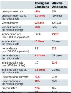 Just a quick glance at the chart to the left from a recent article in MacLean’s Magazine, “Canada’s Race Problem? It’s even worse than America’s.” shows just how serious the issue is in Canada.