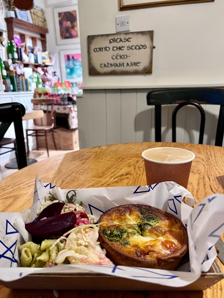 Walking by the Country Store, a sign affixed to its door informed passersby it’s also shut on Tuesdays. Which is why I decided to head to the Tesco (Ireland’s version of Superstor) to stock up on coffee, fruits, yogurt, and other essentials. Although the cottage is surrounded by inviting pubs within walking distance, navigating the one-lane roads at night, isn’t a task I’m eager to undertake.