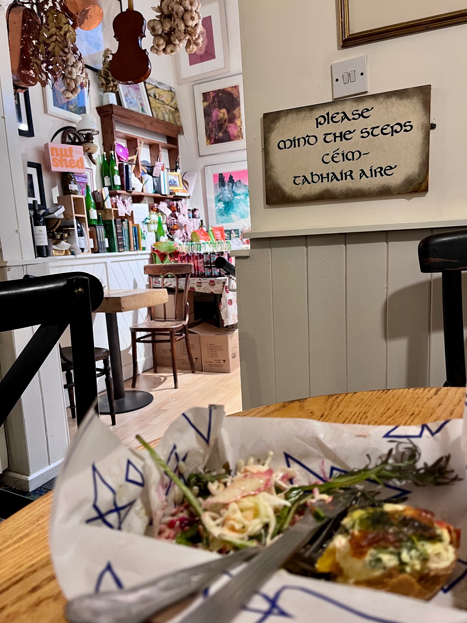 Yesterday morning, deciding to venture into Nenagh to buy provisions for my week at the cottage, the cheerful woman in the pharmacy informed me that the town’s top-rated coffee shop remains closed on Mondays. Interestingly, the next three top favorites, along with the iconic Country Store (known for its French cheeses and salamis), share the same schedule. “You know, the Country Store was the first to introduce salamis and foreign cheese to the region,” she told me with pride.
