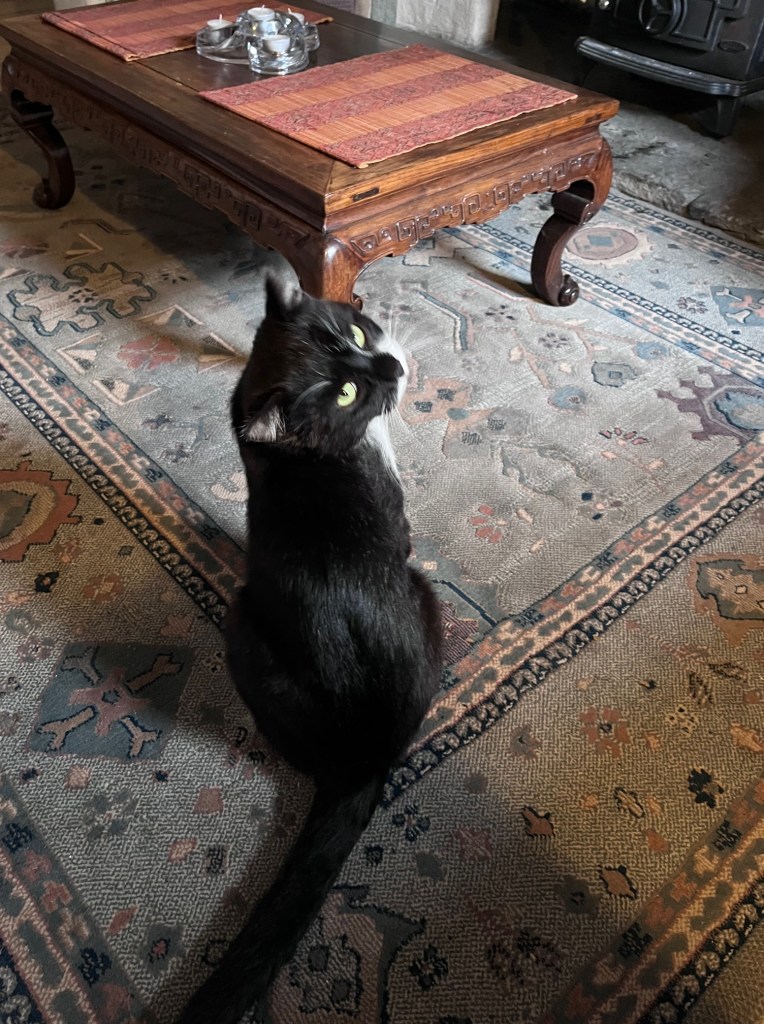 A final sit at Pippa’s father’s writing desk. A final write from the HalfDoor Cottage, a final visit from Mr Baggins. And I’m off.